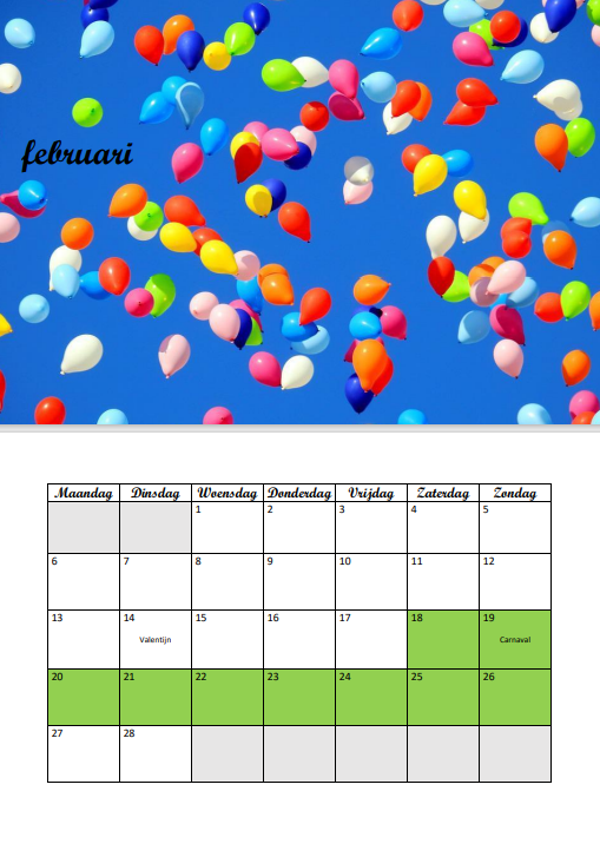 Gelieve door te geven in welke regio (België/Nederland) je woont, zodat ik de juiste versie van de kalender kan doormailen.