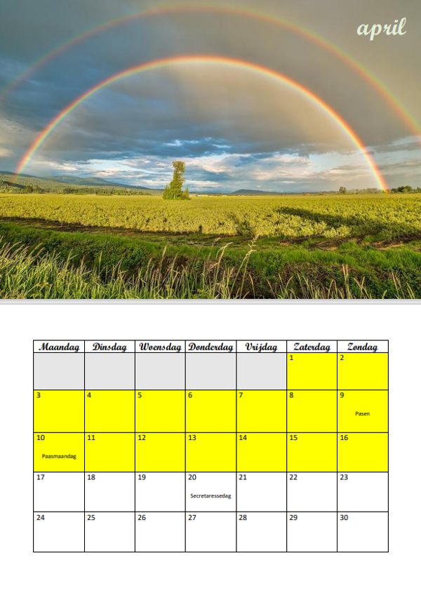 Gelieve door te geven in welke regio (België/Nederland) je woont, zodat ik de juiste versie van de kalender kan doormailen.