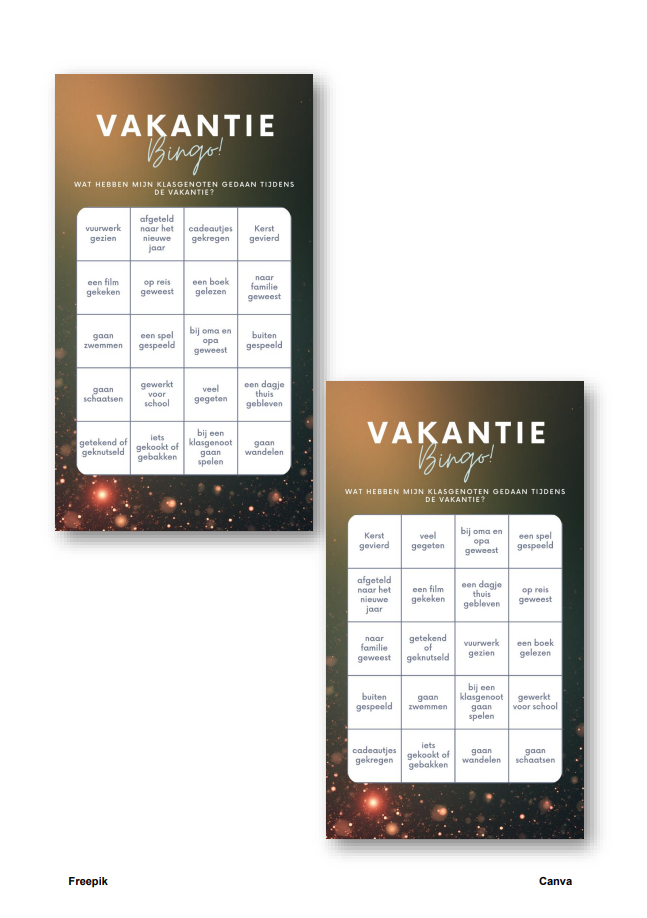 Vakantiebingo kerstvakantie